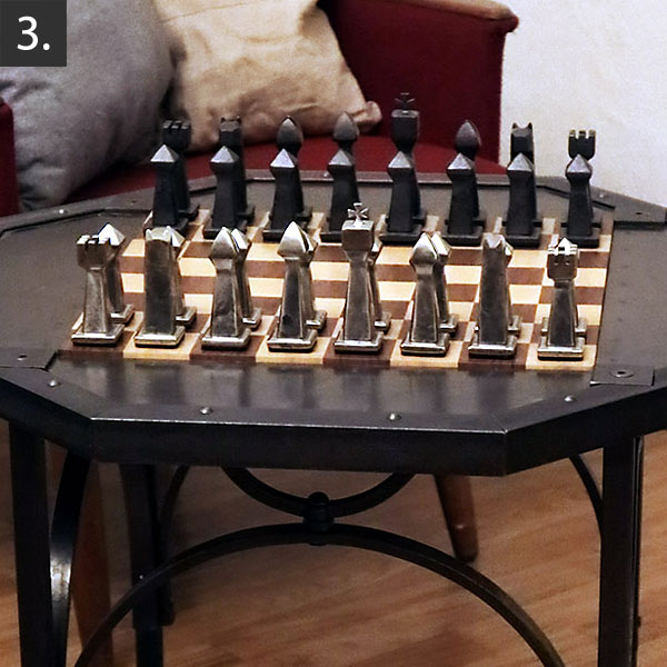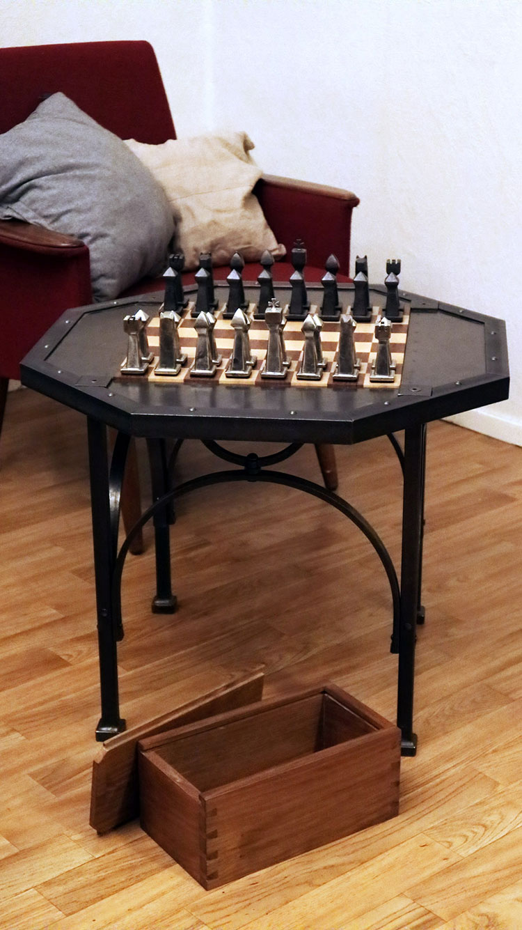 3. Shakkipöytä ja nappulat/ Sami Ryhänen, ”Sepän shakki” 2019. Hinta 2 200 €